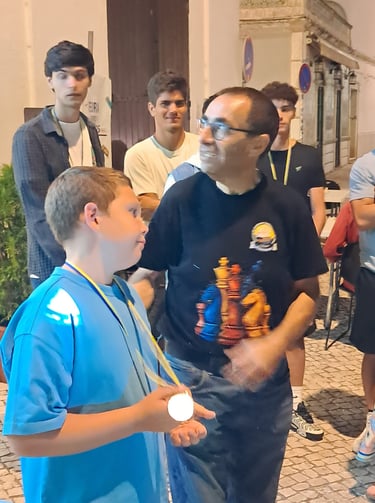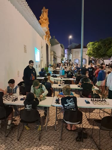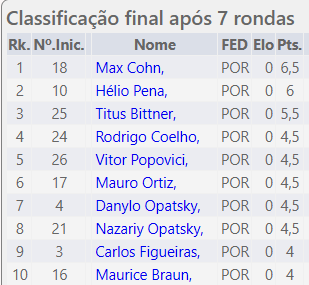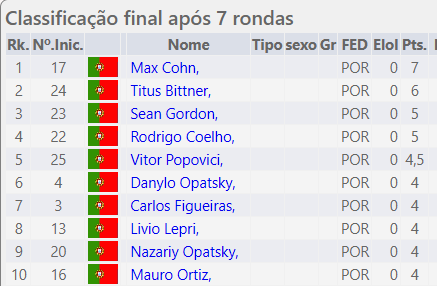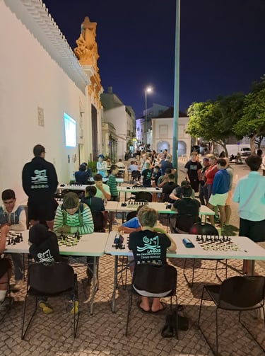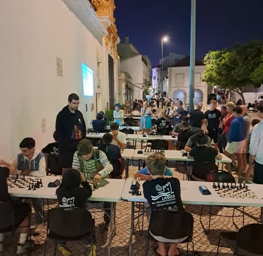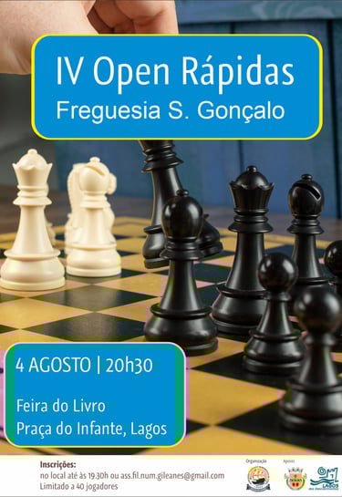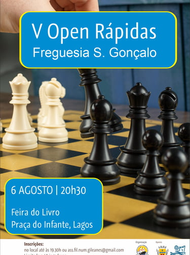 O V Open da Feira do livro em Lagos, foi realizado em 6 de Agosto, numa noite noite muito agradável, com lotação total e organização, como sempre, irretocável, da AFN Gil Eanes sob o comando de José Nunes e Luís Silvério. Max Cohn foi o campeão com 6.5 em 7.